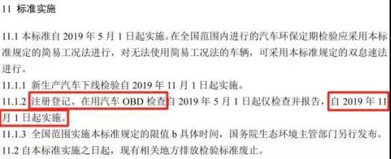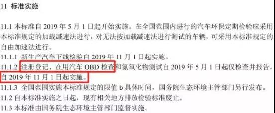 新標(biāo)準(zhǔn)由于修訂內(nèi)容較多,增加了OBD檢測等新內(nèi)容,因此標(biāo)準(zhǔn)實施采取分步走方式。
