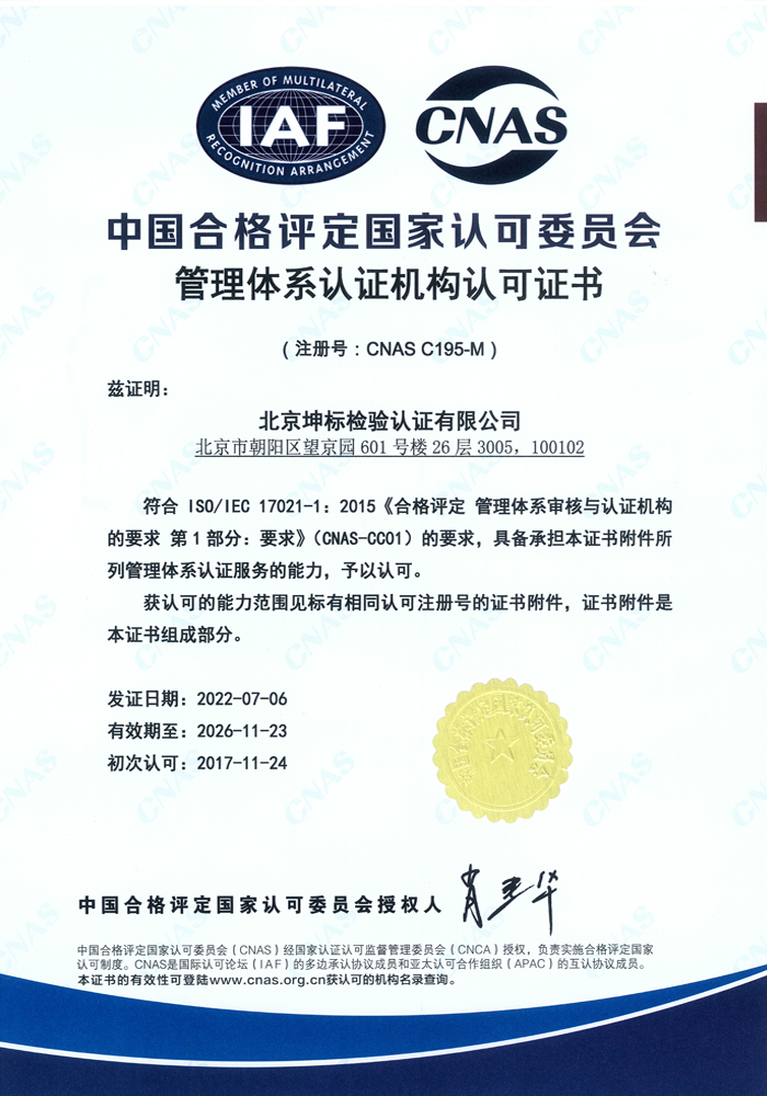 北京坤標(biāo)檢驗(yàn)認(rèn)證有限公司